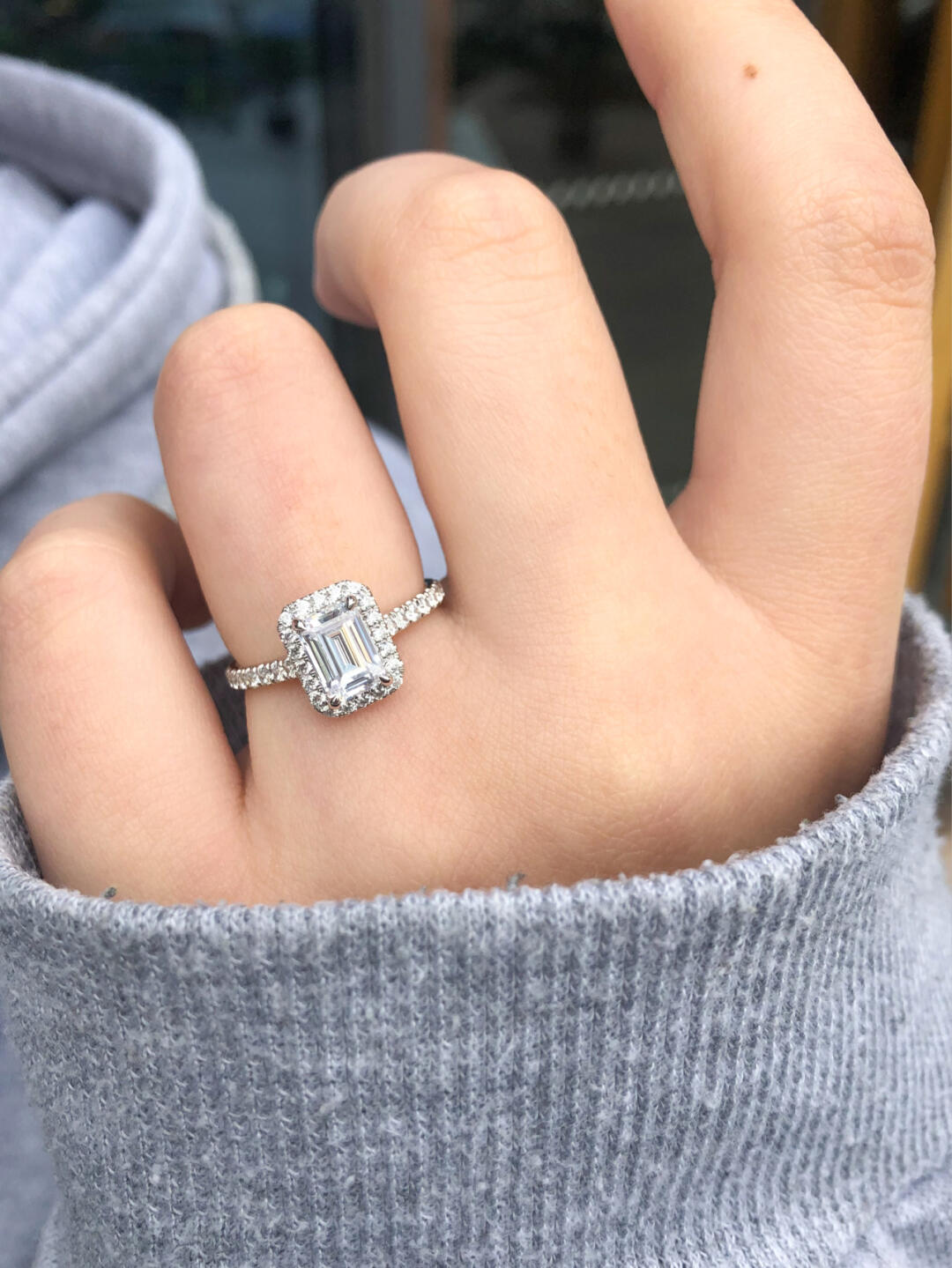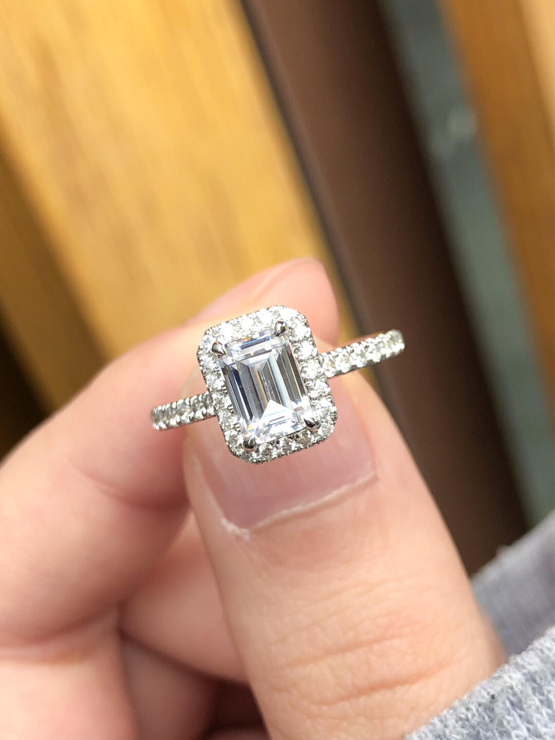 I’m so impressed with this Moissanite ring! The stone is so clear, and the band fits perfectly. It’s a great everyday ring!