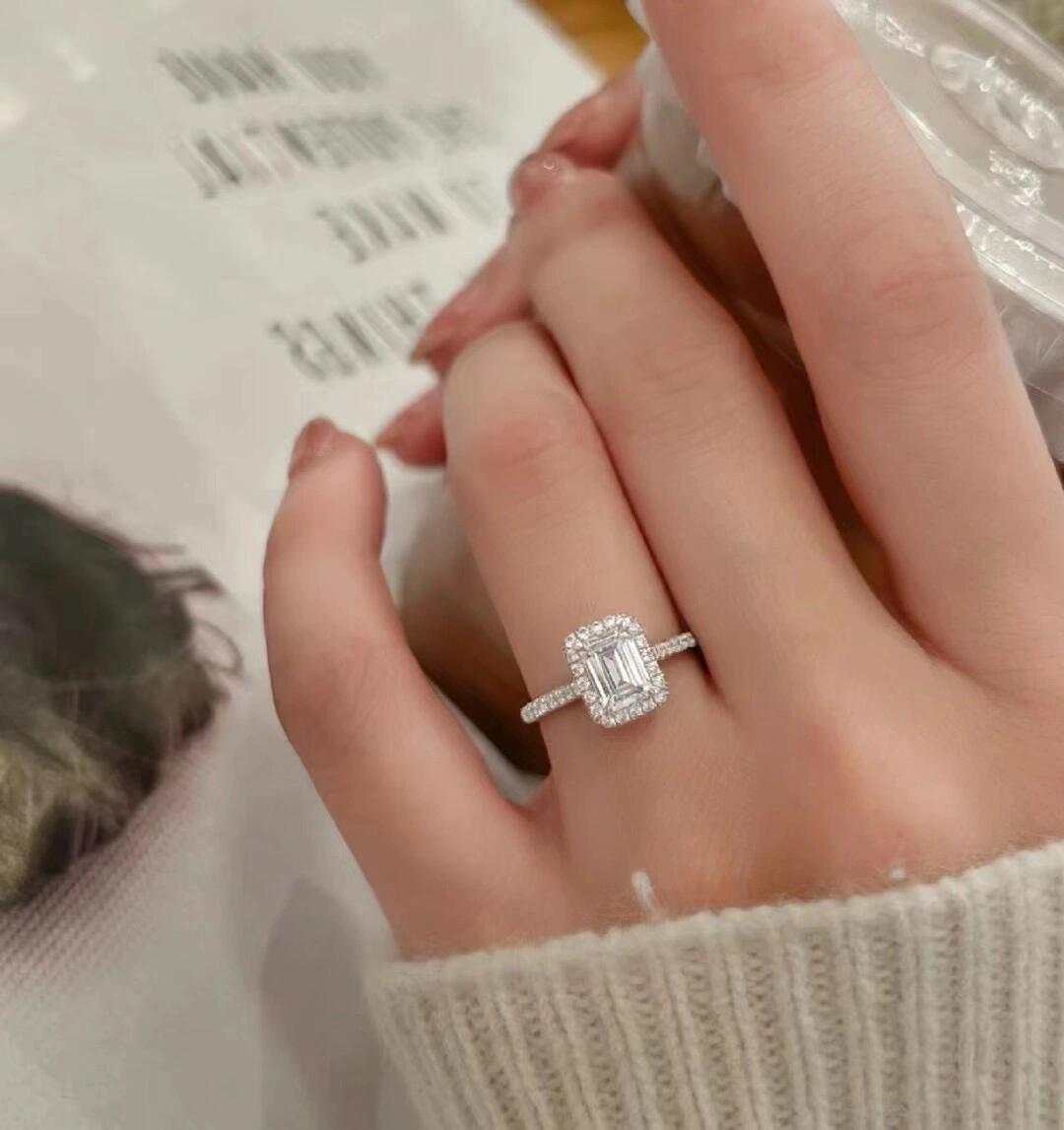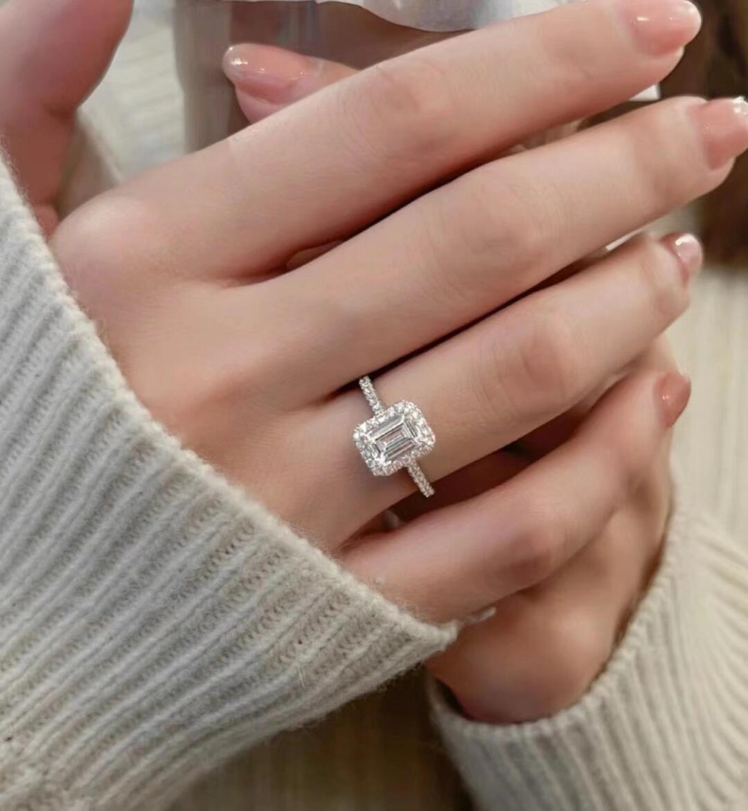 This Moissanite ring is perfect! The stone sparkles so brightly, and the band is so delicate. I wear it every day, and it never disappoints.