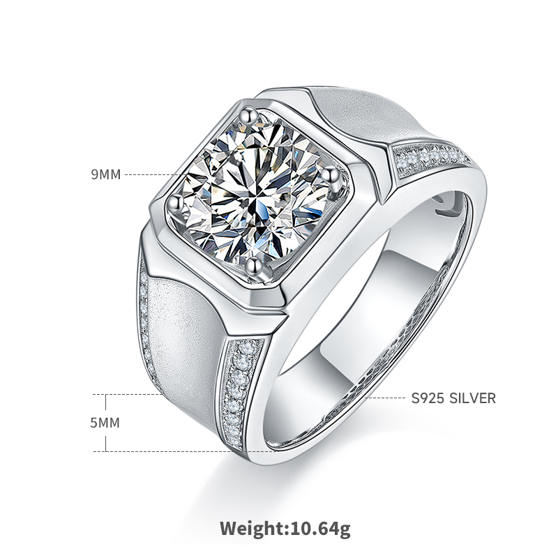 Home / M81C S925 Silver Plated White Gold Moissan Diamond Men's Ring 3 Carat Grade D