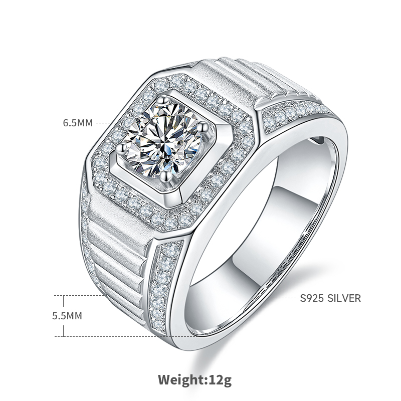 Home / M83A S925 Silver Plated White Gold Moissan Diamond Men's Ring 1 Carat Grade D