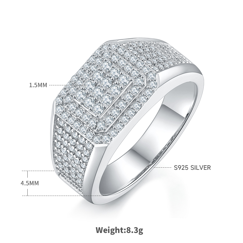 S925 silver plated white gold moissanite men's ring criolite D grade 0.84 carat
