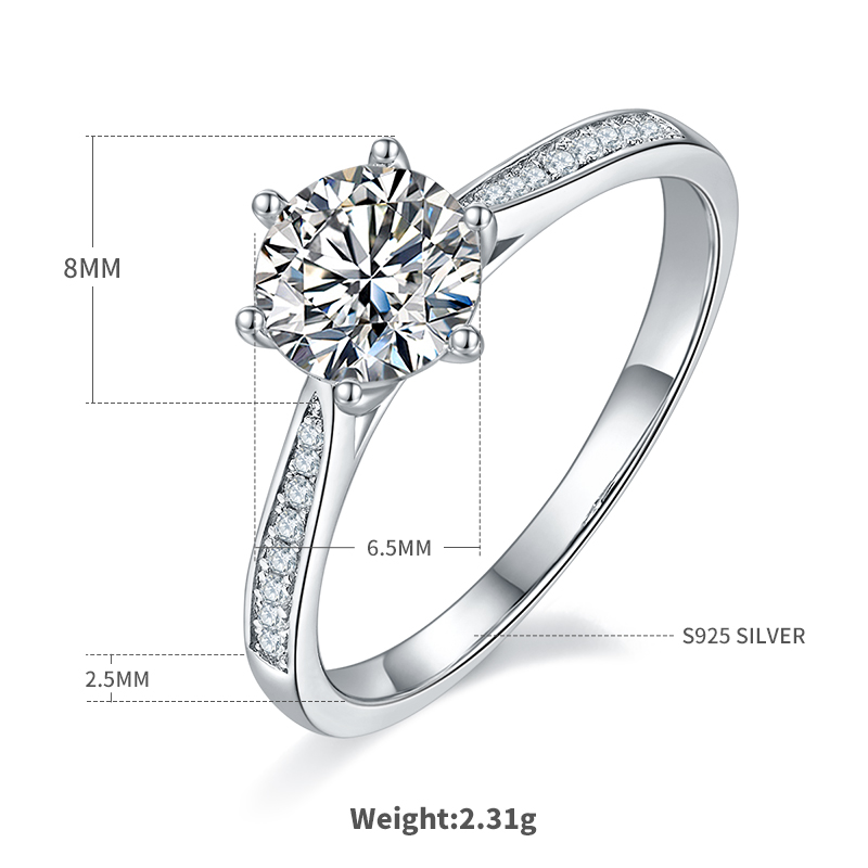 Straight Arm Microset Six Prong S925 White Gold Plated Moissanite Women's Ring 1 ct.