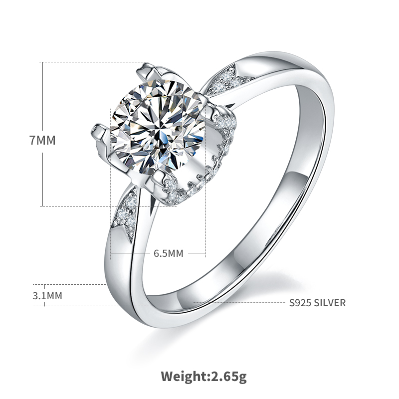 Straight Arm V-Face Micro-Set Bullhead S925 Silver Plated White Gold Moissan Diamond Women's Ring 1 Carat D